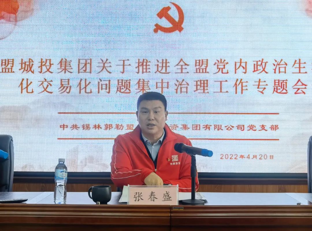 2022年4月20日下午,錫盟城投集團(tuán)召開關(guān)于推動(dòng)黨內(nèi)政治生活庸俗化交易化問題集中治理工作專題會(huì)議,會(huì)議傳達(dá)學(xué)習(xí)了集中治理黨內(nèi)政治生活庸俗化交易化問題的工作方案和問題清單。