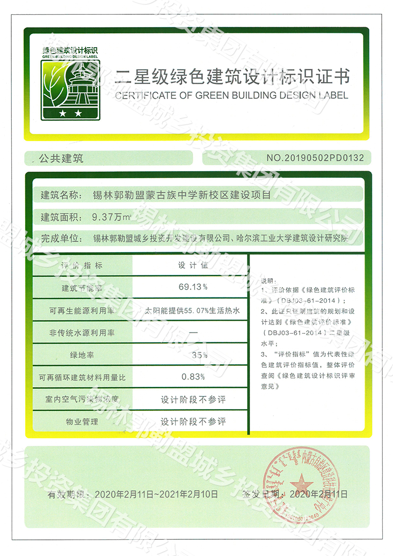 二星級(jí)綠色建筑設(shè)計(jì)標(biāo)識(shí)證書(shū)